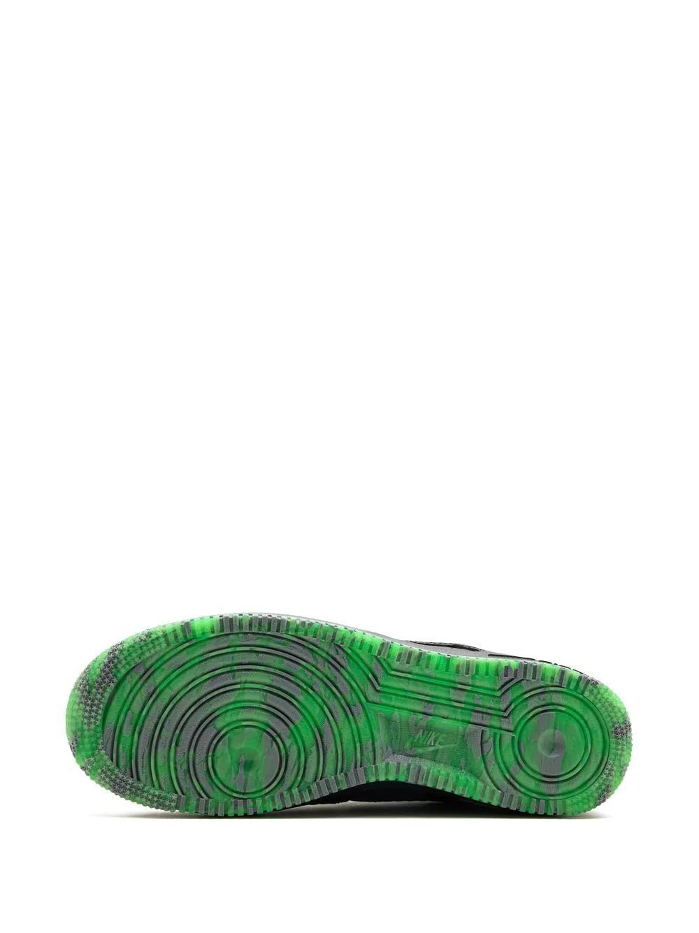 Part of Nike’s βHalloween Packβ these Air Force 1 Low sneakers stand out thanks to their black snakeskin-effect leather construction. Theyβre propped on a contrasting green rubber outsole and finished with silver-tone pumpkin charms at the laces.